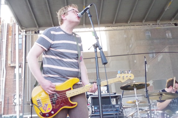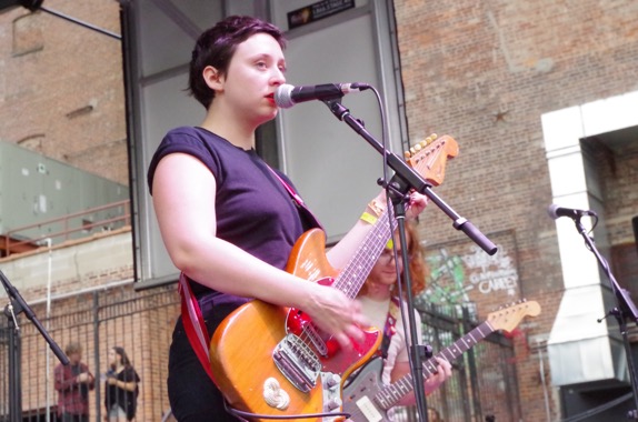 109- Swearin’ — “from Philadelphia, formerly from Brooklyn, formerly from other places’ — are the second last main stage band, and after a strong start, there’s something off and the second half of their set lacks punch.